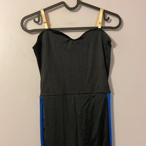 Weissman Black with Shiny Blue Stripe Dance Jumpsuit Unitard size SA (4/6)