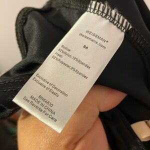 Weissman Black with Shiny Blue Stripe Dance Jumpsuit Unitard size SA (4/6). Very good preowned condition. Stretchy material. Adjustable straps. One piece pull on style. Sweetheart neckline. See pictures for approximate measurements and size guide from company. Dance costume.