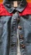 Weissman Dance Costume Denim Vest with Button Closure and Red sequin detail distressed hem.