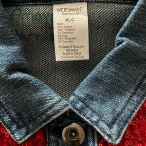 Weissman Dance Costume Denim Vest, Button Front Closure with red Sequin detail