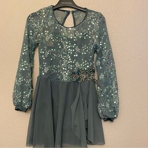 Weissman Dance Costume sage green sequin appliqué Saint Honesty 13413 Child MC