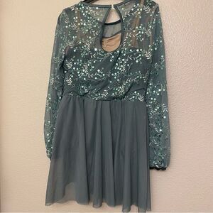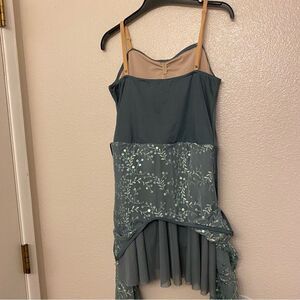 Weissman Dance Costume sage green sequin appliqué Saint Honesty 13413 LC-large child