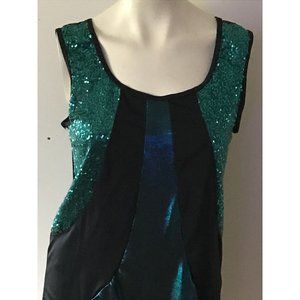 Weissman Dance Green/Black Sequined Dance Tank Top Blouse Wmns Sz Medium Adult