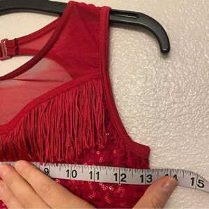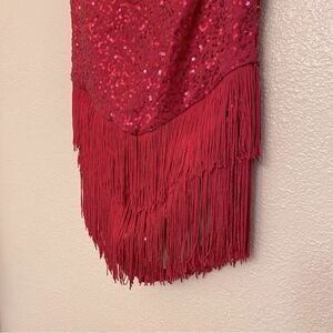Weissman Dance costume red sequin flapper fringe Fringe Neckline Dress D12490 LC
