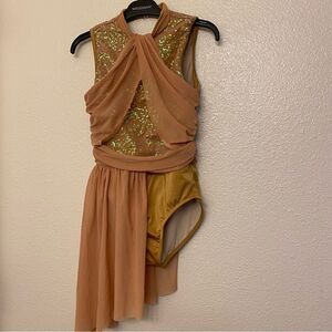 Weissman Dance Costume tan beige dress sequin mesh Hand In Hand 13443 LC