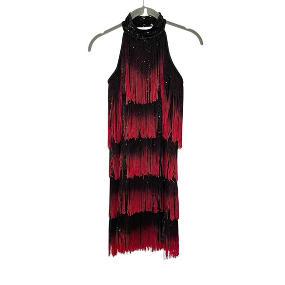 Weissman Dancewear Fringe Red Sequin Dress Dance Costume Flapper Jazz Ombre 4/6