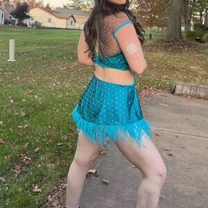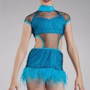 Weissman Elite Rhinestone Mesh Feather Dress Costume in Blue NEW Adult Size XL