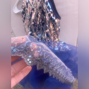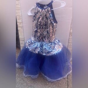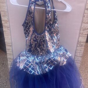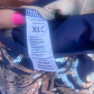 Material: *Bodice* - 18%Spandex, 82%Nylon, *Lining* - 5%Spandex, 95%Polyester, *Skirt* - 100%Nylon