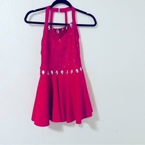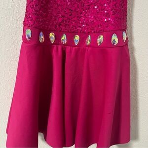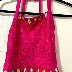 Weissman LC Large (12-14) Pink Sequins & Crystal Dance Costume Halter Neckline