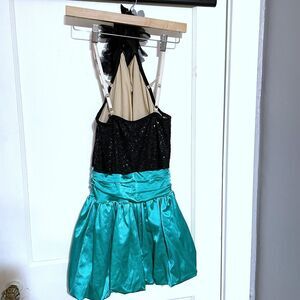 Weissman Medium Adult Dance Costume Pageant Dress Black Teal Sequins Halter