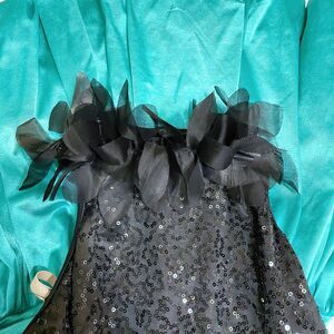 Weissman Medium Adult Dance Costume Pageant Dress Black Teal Sequins Halter.