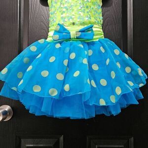 Weissman NWOT child small dance costume jazz tap solo blue green polka dots