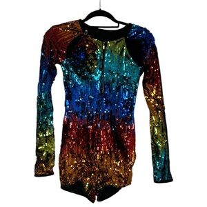 Weissman Rainbow Festival Party Disco Event Dance Sequin LGTBQ Costume Jumpsuit