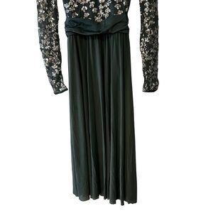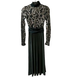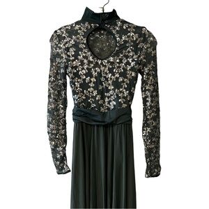 • Shiny spandex dress with sequin embellished mesh overlay and long sleeves