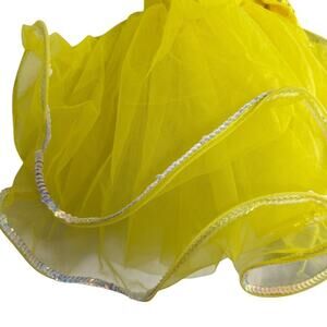 Weissman Yellow Rhinestone Sequin Tulle Dance Costume Dress & Hair Bow sz XS C