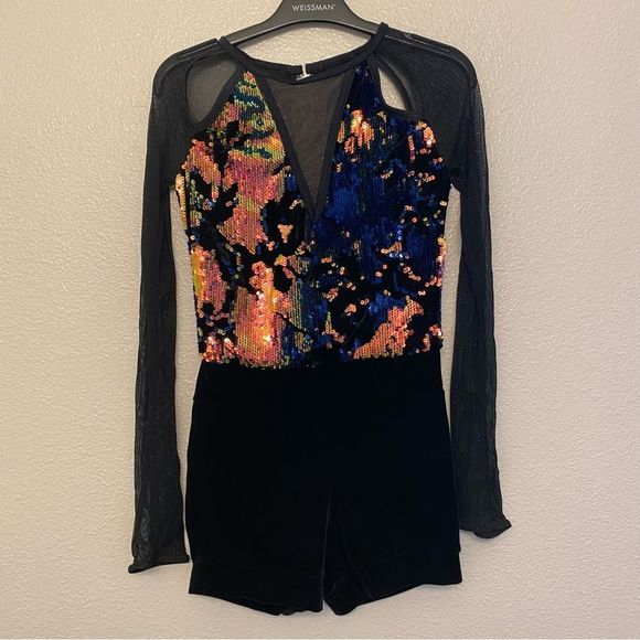 Weissman dance costume unitard mesh black velvet sequin Hunter 10040 adult SA