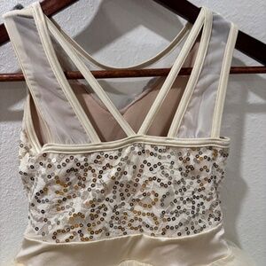 The Weissman dance costume in white and silver is a beautiful and elegant outfit designed specifically for girls. Made of a blend of polyester, nylon, and spandex, this costume is comfortable and perfect for dance performances. The size MC ensures a good fit for young dancers, and the intricate design and color combination make it a standout choice for any dancewear collection. Made in China, this costume is a high-quality and stylish option for young dance enthusiasts.
