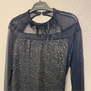 Feather trim at the neckline