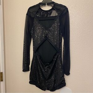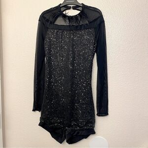 Weissman dance costume black feather biketard Hungry Like The Wolf 11626 LA