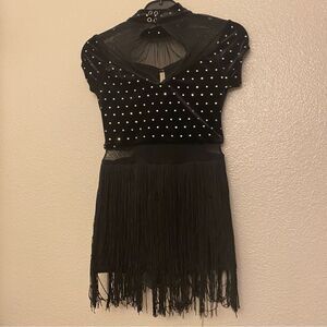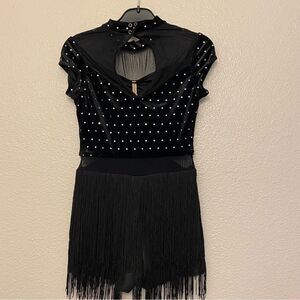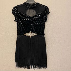 Weissman dance costume black velvet crystal fringe End Of Time 13009 MC 10/12