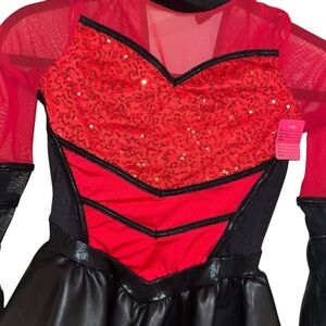 Weissman red black faux leather sequins dance dress costume child medium mc style 17656 with headband like new