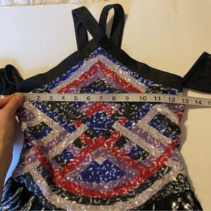 Weissman solo Dance costume geometric fringe sequin dress leotard c LC child