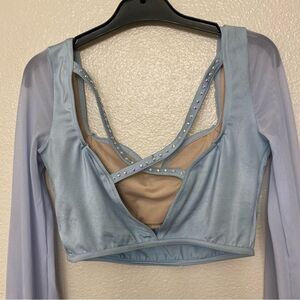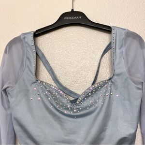 Weissman solo Elite dance costume 2 piece blue custom rhinestone Honest 16746 SA