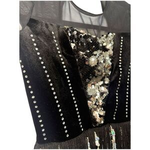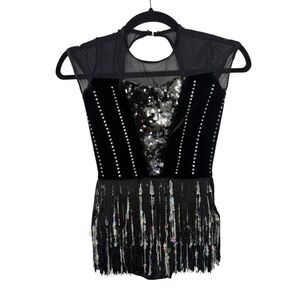 Weissman Costumes Girls 10/12 Dance Leotard Fringe Sequins Rhinestones Black
