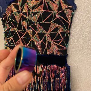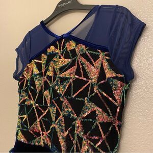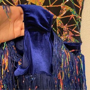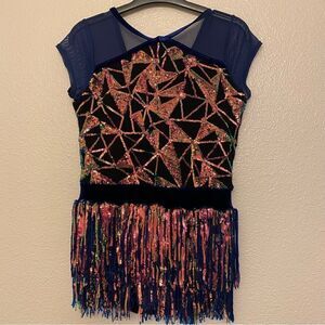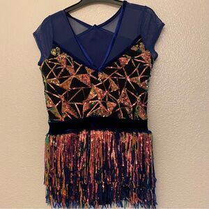 Weissman Dance costume blue sassy fringe sequin dress Misbehave 16291 child XLC