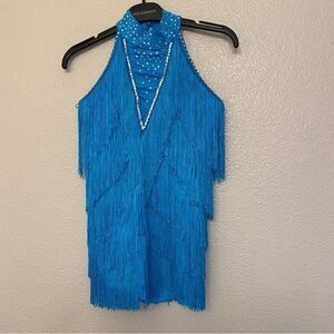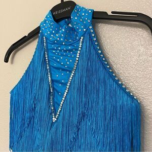 Weissman Dance costume aqua blue sassy fringe dress Spice Up Your Life 14130 MC