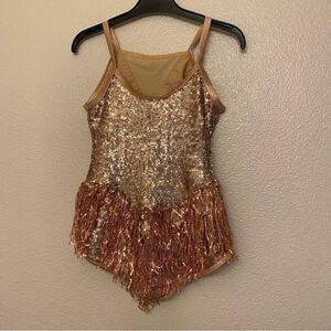 Weissman Dance Costume gold fringe rhinestone flapper Little Swing 10147 LC