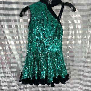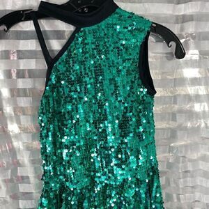 Weissman Green/Black Sequin One Shoulder Dance Wear