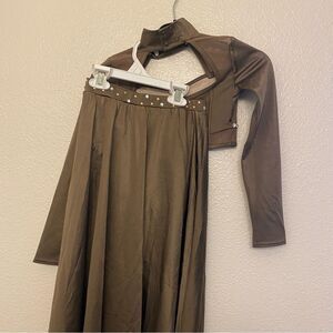 Weissman custom solo dance costume 2 piece brown maxi skirt caged top SH12603 IC- child 7/8