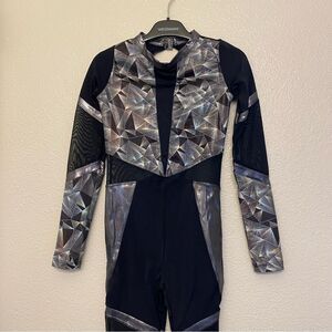 Weissman dance costume silver black Metallic Triangle Unitard 11435 LC child