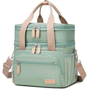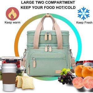 🧿【Large Two Compartment Capacity】--The Large Lunch Box ( SIZE: 11H''*10.5L''*8''W) Is Designed To Maximize Storage Efficiency, With Foldable Upper Insulated Compartment And Waterproof Down Compartment, 2 Front Zipperred Pockets,1 Back Pocket And 2 Side Mesh Pockets Very Spacious And Convenient For You To Keep Food Fresh And Storage Other Items