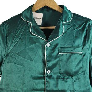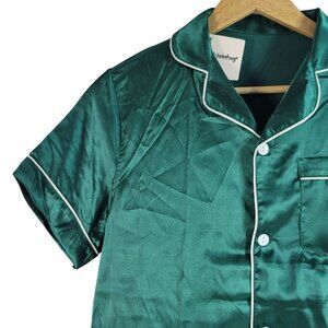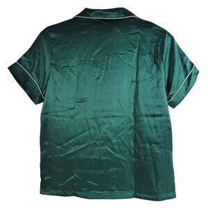 Weixinbuy Green Satin Pajama Top Short Sleeves Button Front Collar NWT.