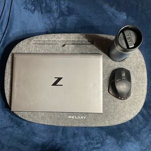 Welaxy Lap Desk Black & Dark Gray Entire Surface Mouse Felt Pad Grip Drink Slot