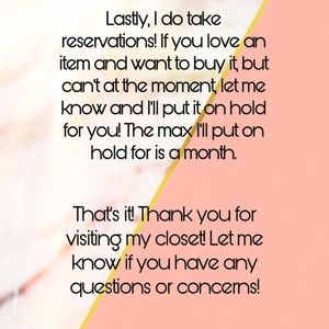 Thank you for checking out my closet and let me know if you have any questions or concerns.