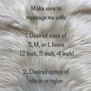 ~ Desired size of S, M, or L bow (3 inch, 4 inch, or 5 inch bow)
