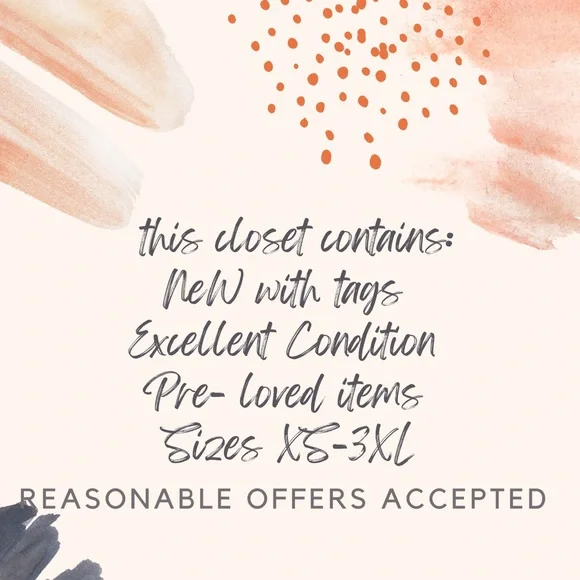 Happy Shopping! Reasonable offers always accepted. Please remember that Poshmark takes 20% and for any NWT items from my stores, offers need to at least cover my wholesale cost or I can not accept.