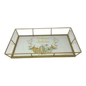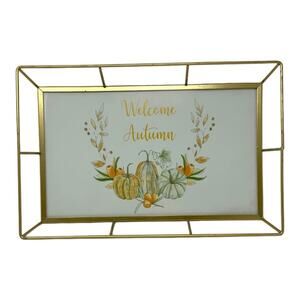 Welcome Autumn Seasonal Gold Metal Wire Decorative Tray