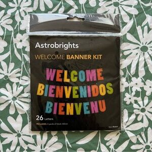 Brighten up your party with the Welcome Banner Kit. Featuring vibrant colors, this kit is perfect for any celebration. Includes 26 letters and black ribbon for easy hanging.