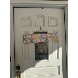 Welcome Easter Bunny Rabbit Gnome Sign Wall Front Door Hanger Home Decor