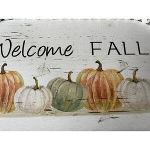 Welcome Fall Double Handled Chippy Wooden Tray 20” L Pumpkins