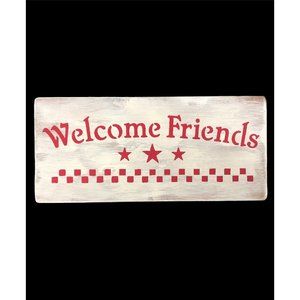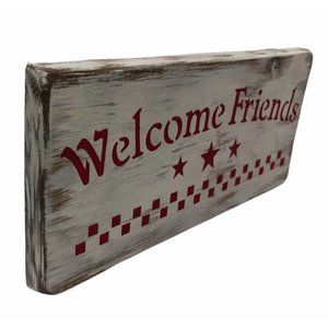 Welcome Friends Handmade in USA Wooden Wall Hanging Rustic Farmhouse White Wash