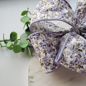 For all my "whiskey in a tea cup" ladies. Super sweet oversized lavender forget-me-not printed ribbon w/ faux eucalyptus branches on a white distressed wood circle w/ 12" diameter. Welcome is purple vinyl and whiskey line is painted green. All sealed to last forever. Add to your door or entry. Makes a great gift! Will come with 2 D hooks on the back and a length of coordinated ribbon for hanging. Also includes felt pads to protect your wall or door.
