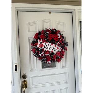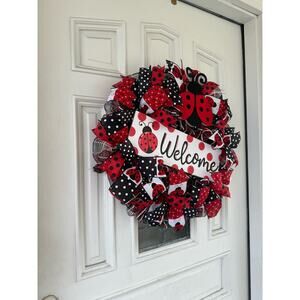 🐞 Brighten your entryway with this adorable ladybug-themed welcome wreath! Perfect for spring, summer, and year-round charm, this handcrafted wreath features: