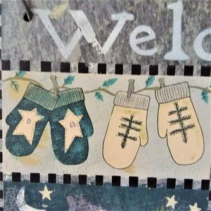 Has the words welcome & Snowmen Front door your yard Metal hanging hooks