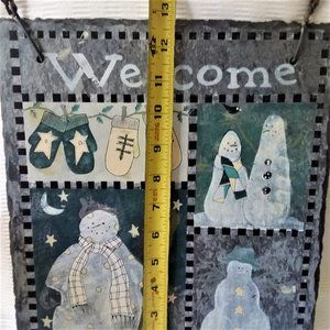 Welcome Sign Plaque Natural Stone Hand Painted Winter Snowman Slate Door Home