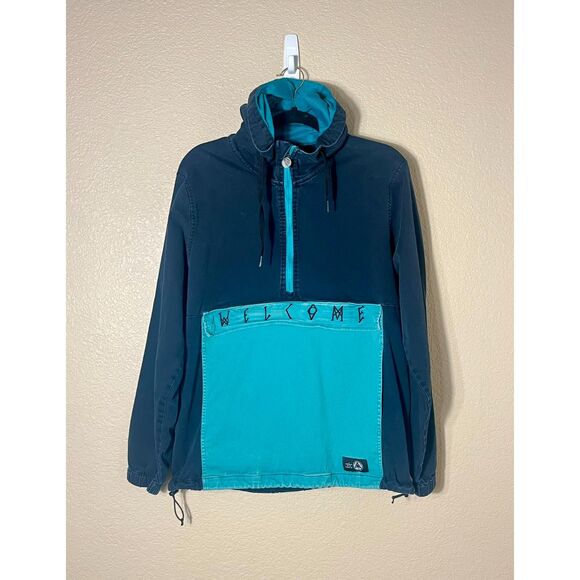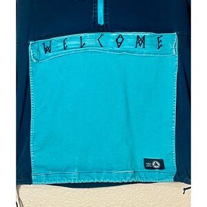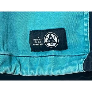 No size tag. Estimate to be a size men's medium. Refer to photos for measurements. Fabric is dyed twill and as such, has a faded appearance. Washed and worn condition.